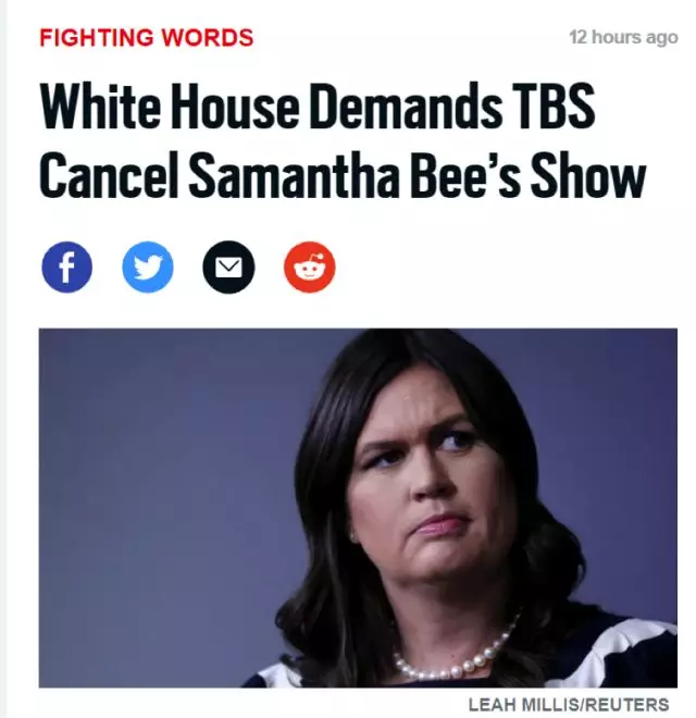 于是,在节目播出后,伊万卡的父亲--美国总统特朗普--所在的白宫立刻就被惊动了,白宫发言人更是直接斥责萨曼莎对于伊万卡的侮辱极为"卑鄙和恶毒",并要求播出这起节目的TBS电视台及其母公司"时代华纳"集团必须用行动证明他们绝不接受这种侮辱女性的言行。